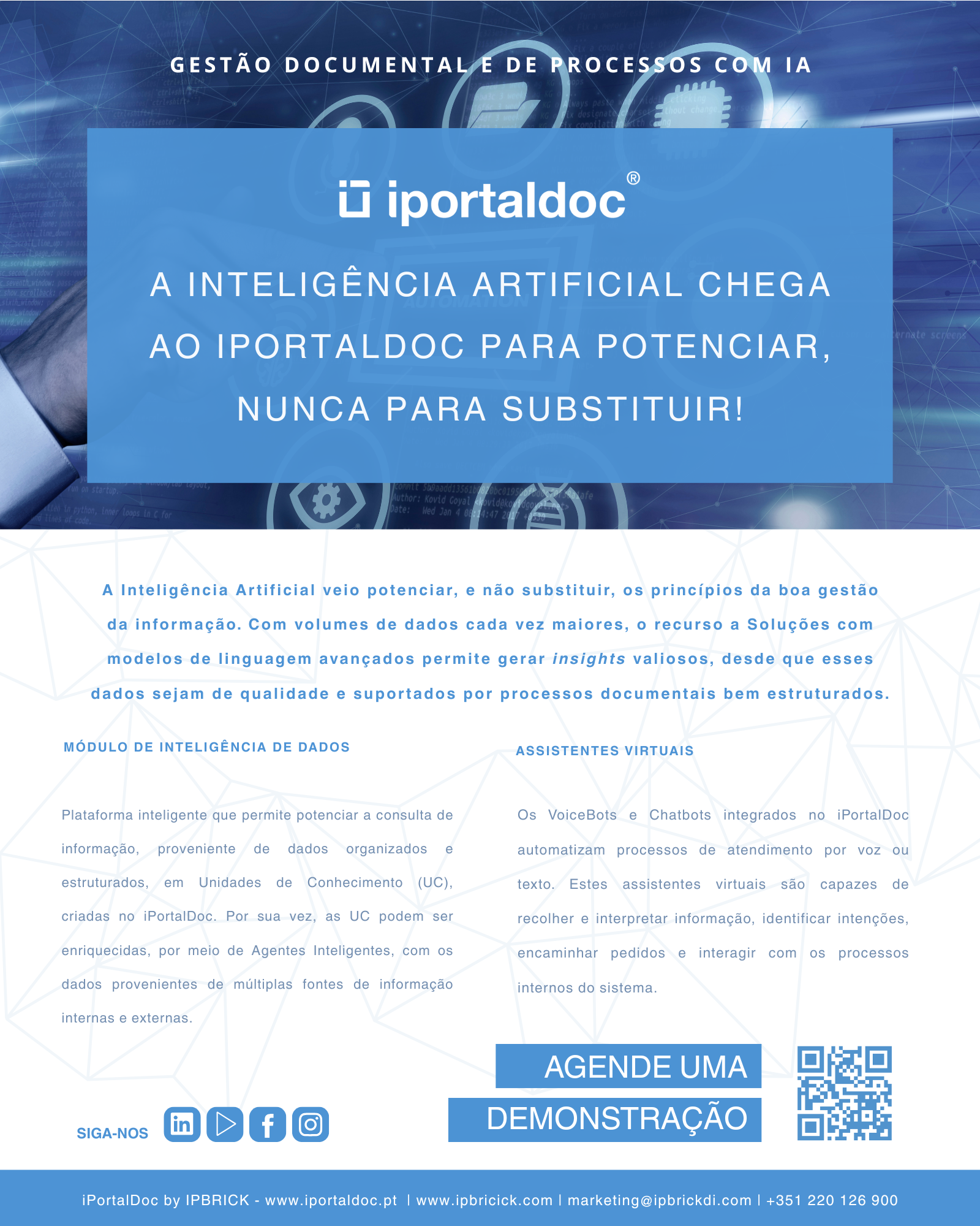Joana Cruz @ 01 AprContinuar a lerA Plataforma de Inteligência de Dados IPBRICK que assente na Solução de Gestão Documental e de Processos, iPortalDoc conta com um Assistente Inteligente suportado por um modelo de IA privado.