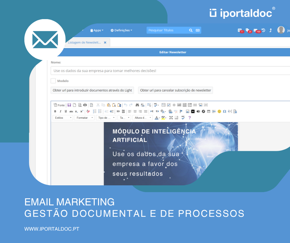 Joana Cruz @ 14 OctContinuar a lerO iPortalDoc integra um módulo de Email Marketing que permite criar e gerir campanhas de newsletters sem sair da plataforma de gestão documental.
